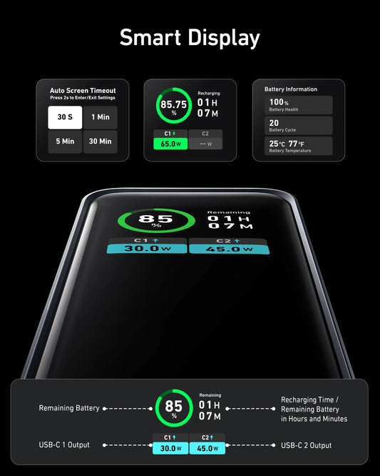 Anker Prime – Batterie Externe 130W avec Entrée 62W et Affichage Intelligent