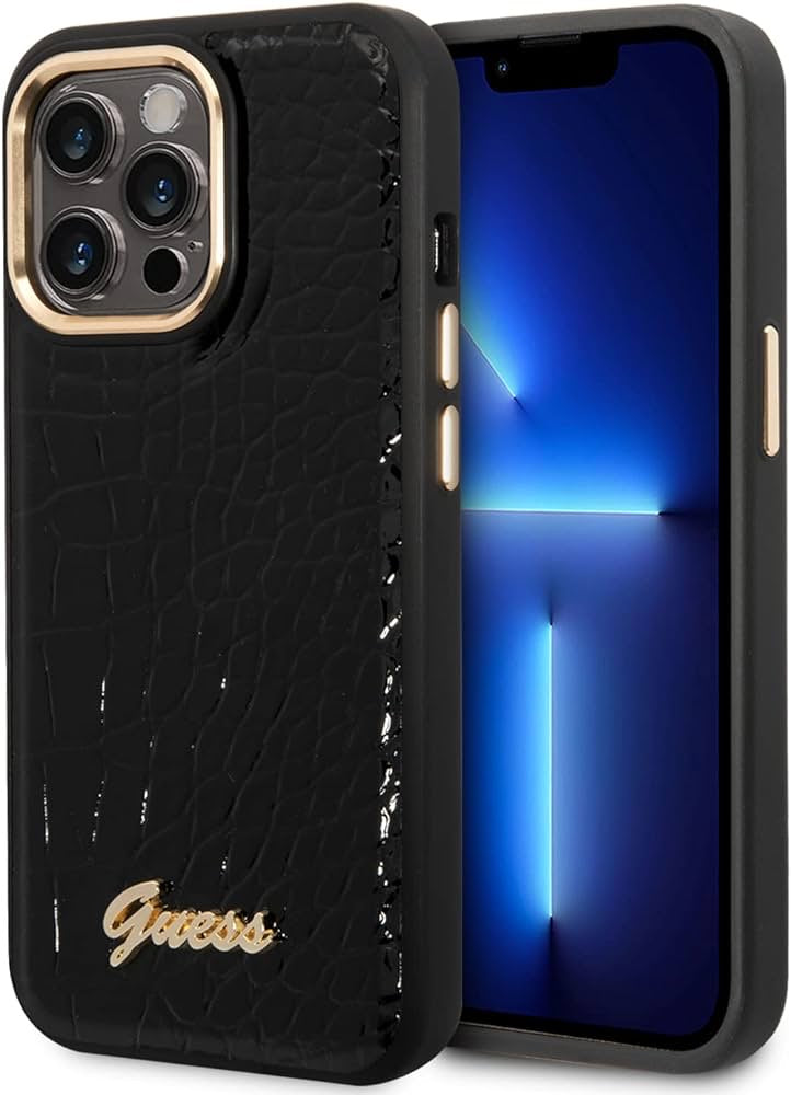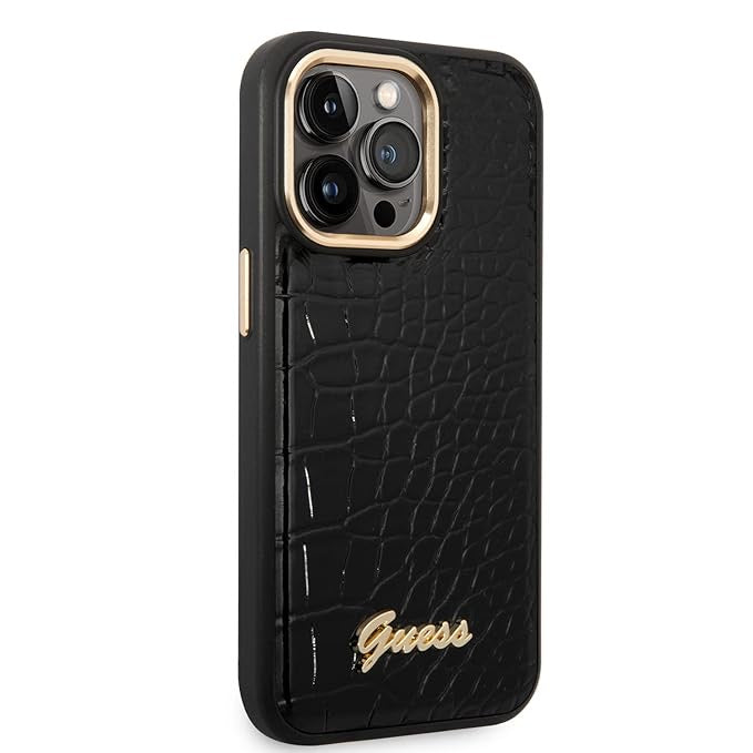 CG MOBILE Guess iPhone 14 Pro Case [Official Licensed] PU Croco Case with Camera Metal Outline Protective Case/Cover Designed for iPhone 14 Pro (6.1-Inch) 2022 - Black