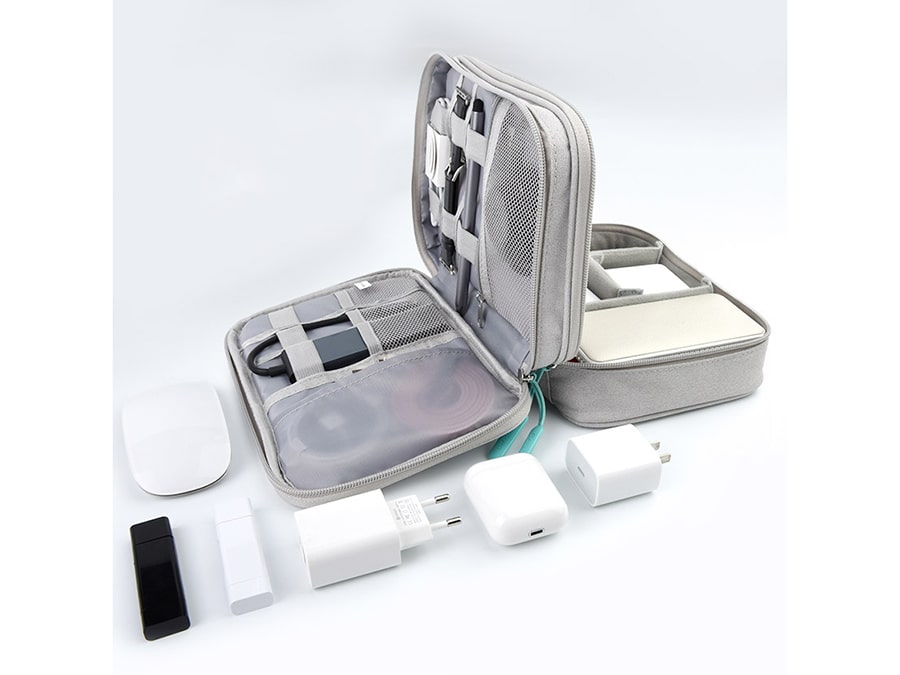 - This Double deck Universal digital organizer bag can be use as the travel electronics case for iPad air, mouse, external hard drive (HDD), Phones, Plugs, Memory cards, power bank and etc. Or as a makeup bag for your travel accessories.