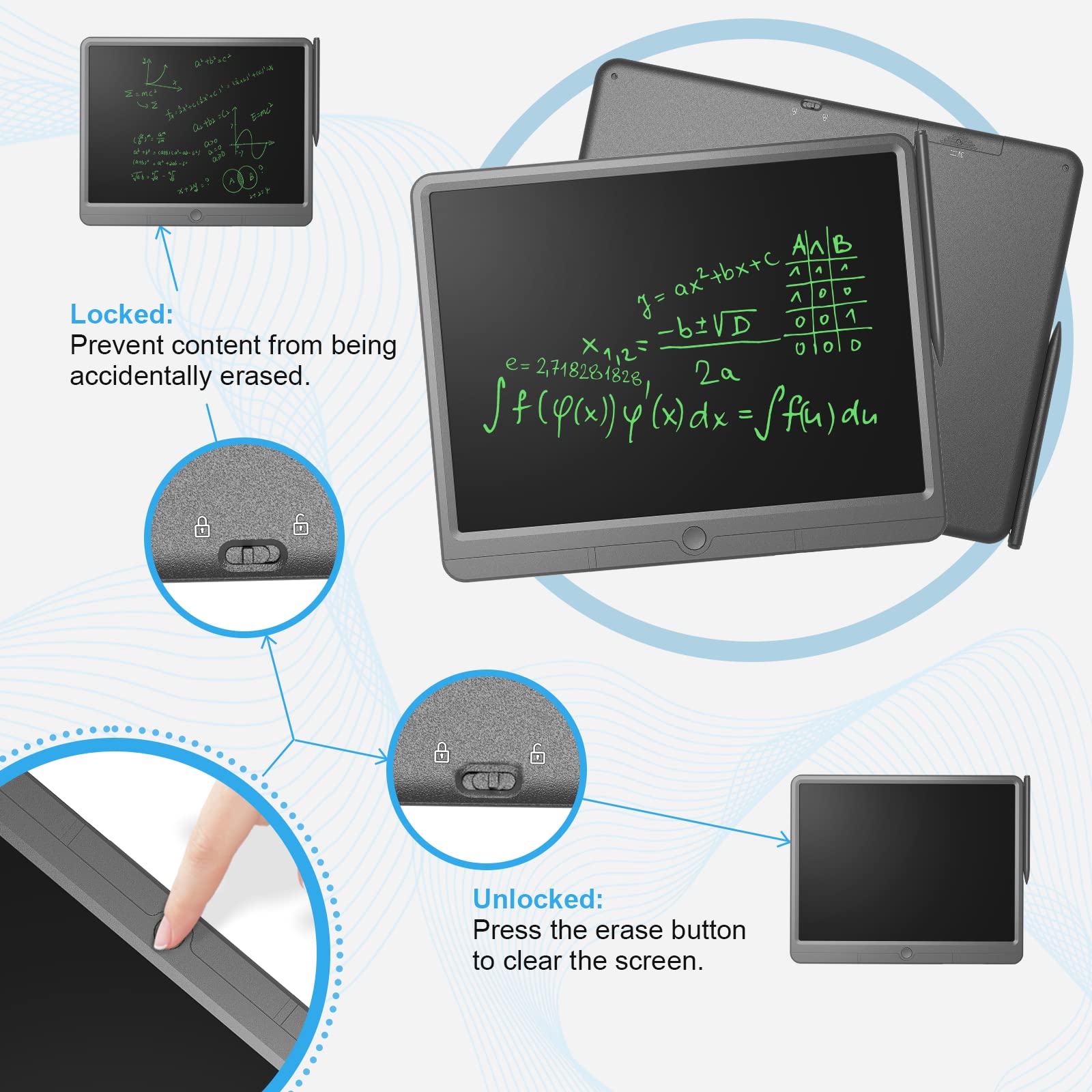 digital notepad adopts the latest high-tech flexible liquid crystal technology and smooth flexible LCD screen. The non-blue light flexible screen screen does not emit light by itself, imitating the appearance of ink on paper, preventing eye fatigue after extended use. No dust, no ink, no radiation, safe and hygienic.