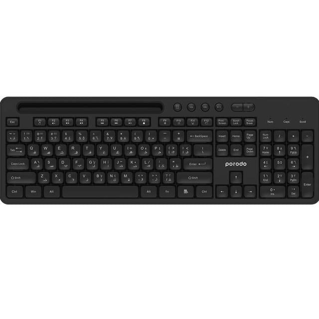 Porodo Dual Mode Wireless Keyboard Mouse Set With Mobile Phone Stand - Black
